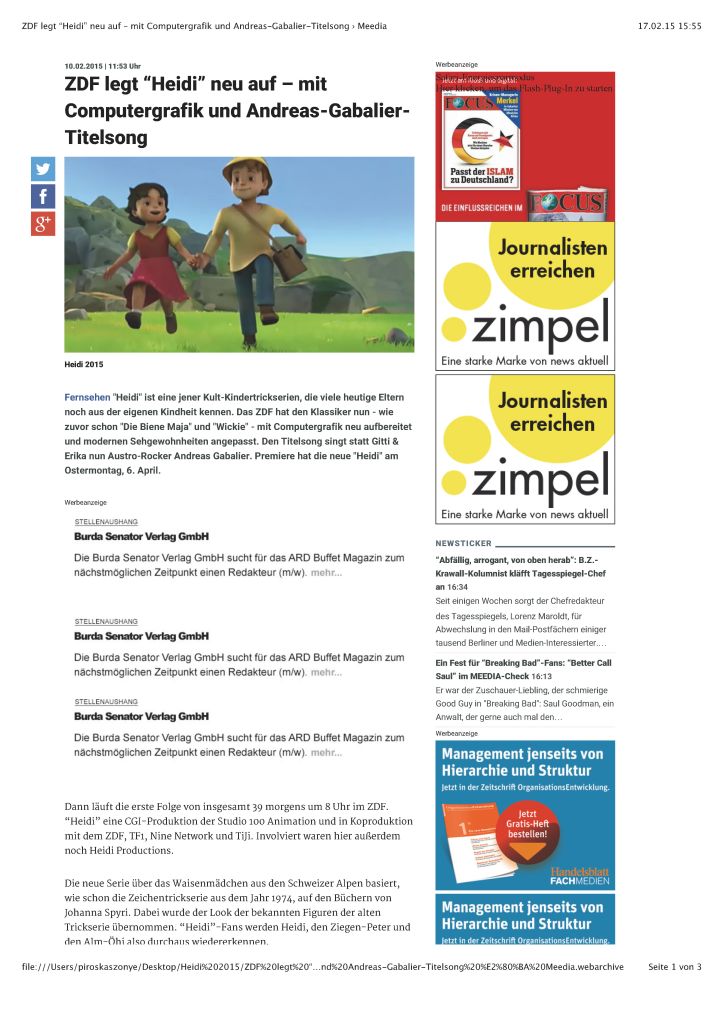 ZDF legt “Heidi” neu auf – mit Computergrafik und Andreas-Gabalier-Titelsong › Meedia_Seite_1 Published 17. Februar 2015 at 3812 × 5391 in ZDF legt “Heidi” neu auf – mit Computergrafik und Andreas-Gabalier-Titelsong › Meedia_Seite_1